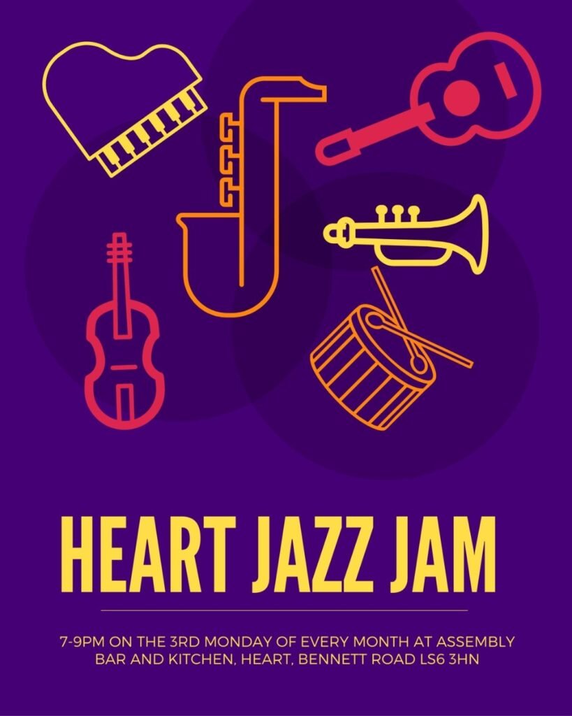 We host Jazz Jam Sessions at Heart from 7-9pm on the 3rd Monday of every month.