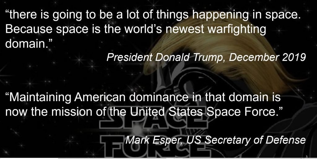 When the US Space Force was established in 2019 President Trump said that it marked “a big moment” and that there was “going to be a lot of things happening in space. Because space is the world’s newest warfighting domain.” A new generation of space weapons is also on the cards.