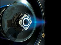 Dreams of nuclear power in space did not die with the collapse of the Soviet Union and restrictions on the Nasa budget. Many space scientists agree that nuclear power is the only viable way of exploring the outer Solar System. Using chemical rockets to move between planets and their moons is not really practical because of the fuel mass a spacecraft would have to carry with it, and relying on solar power to drive instruments is problematic because of the distance from the Sun. Travel out to Mars and there's only a 10th as much solar energy as reaches the Earth. At Saturn, it is a hundredth of the power we are familiar with. Arrays of solar cells to produce really useful power there would be impossibly big. So far, probes to the outer planets, such as the Cassini craft now orbiting the ringed planet, have used Radioisotope Thermal Generators (RTGs) - solid state electrical generators powered by the heat of radioactive decay. But that power is limited. The RTGs on Cassini would not produce enough to run a hair dryer (three units produce about 700 watts). Scientists would love more electrical power for their instruments - but there is another use for which nuclear electric power could make all the difference: the ion engine. 'Dustbin' size By using electrical energy to ionise atoms and accelerate them in a jet, it is possible to propel them at more than 10 times the speed a chemical rocket jet can manage. That means that you need less than a tenth of the propellant to travel a certain distance.