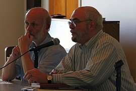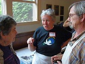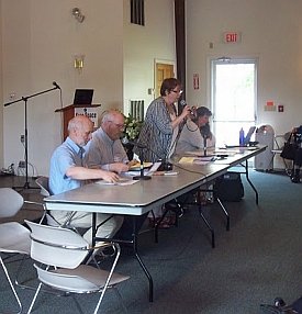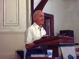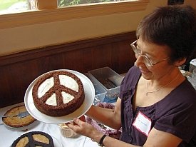 On the evening of June 18 a second conference dinner was held at another Unitarian Church – this time in North Andover. War Resisters League/New England leaders Joanne Sheehan and Rick Gaumer cooked both of our dinners during the conference. It was wonderful having them with us and their good cooking was much appreciated by all. Two Peace in Space awards were presented after dinner to long-time GN board member Agneta Norberg (Sweden) and to the Merrimack Valley People for Peace. Art Brien accepted the award on his group’s behalf. GN chairperson Dave Webb (England) surprised all of us by presenting me with a Peace in Space award as well.