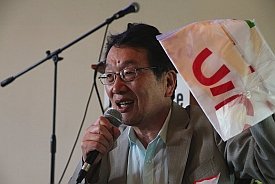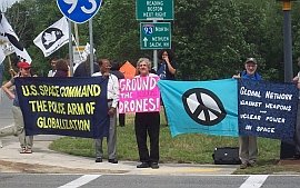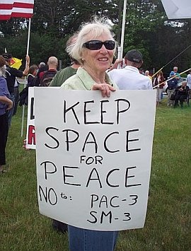 Loring Wirbel (Citizens for Peace in Space, Colorado Springs) has created a page on YouTube for videos he made of many speakers at the conference. You can see them here Jim Haber has put his images on flickr HERE More photos taken by Marian Stanton HERE And some by Nicole Moreau HERE Global Network 19th Annual Conference Joint Declaration At a time when the Obama Administration would like to stress its adherence to a more multilateral National Space Policy, the members of Global Network Against Weapons & Nuclear Power in Space remind us that the real global situation in space militarization should still be disturbing, when we see the real-world plans of the U.S., its NATO allies, and industrial nations worldwide. Even as the four years of an unprecedented recession have cut into commercial space enterprises, military budgets continue unabated, and are approaching $1 trillion annually in the U.S. The knee-jerk air-assault responses to the Libya crisis, followed by the SEAL assault on the Bin Laden compound in Pakistan, show that even as citizens of the Middle East and Maghreb nations rise in largely nonviolent campaigns for change, the U.S. and its NATO allies respond with integrated air, sea, and ground assault campaigns that use the theaters of space in virtually every aspect of military strategy. Global Network points out that, even as concern about long-range missile-defense networks in some regions has abated, the U.S., NATO, Israel, and other nations have increased the development pace on tactical land-based systems like the PAC-3 missile, and sea-based Aegis systems using SM-3 interceptors. Spy satellite launches from the National Reconnaissance Office have continued at a rapid pace, as have classified space-plane tests from the Air Force and Defense Advanced Research Projects Agency. The space plane tests, in particular, are elements of a new Pentagon program called Conventional Prompt Global Strike, managed through the U.S. Strategic Command and highly favored by Obama. This mission seeks the ability to strike anywhere on the planet in a two-hour window. These developments are actually offensive. They are destabilizing, promote a new arms race, and siphon money from domestic needs without enhancing true security, Trends in warfare in 2011 make it clear why Global Network has chosen Raytheon Corp. this year as representative of the large military-industrial giants we oppose. Raytheon is critical in development of the PAC-3 and SM-3, it produces elements of land- and space-based missile defense such as the Exoatmospheric Kill Vehicle, and it outsources much intelligence processing from the National Reconnaissance Office and National Security Agency. As the Pentagon turns to space for Global Strike purposes, Raytheon is on the front line. Global Network commits itself in 2011, a year of global citizen uprisings, to peaceful support of nonviolent struggle. GN supports the efforts of citizens in South Korea, Japan, Guam, and other nations in their struggle to remove U.S. bases, and calls on the U.S. and NATO to avoid military options in the Middle East and Africa. GN calls for an end to missile defense, negotiations for a treaty to ban weapons in space, the removal of U.S. troops from Iraq, Afghanistan and Pakistan, an end to global-strike plans, a reduction in military budgets worldwide, and a reorientation of space use to emphasize peaceful purposes. - This