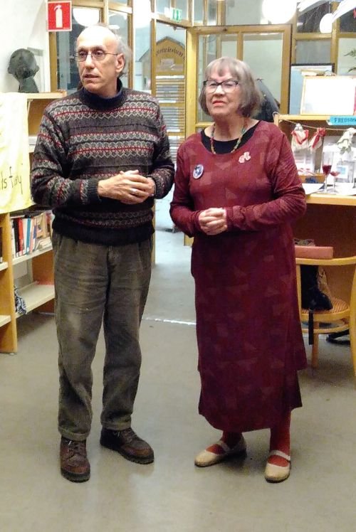 Monday February 6th - Meeting at the Peace Station The next day we moved on to the place for our meeting - the wonderful Peace Station House in the centre of Helsinki, close to Pasila railway station, the second busiest railway station in Finland. The old wooden Peace Station was, in fact, the first railway station at Pasila and was opened in 1862. In 1990 it was moved about 400 metres to its current location and is the home of the Peace Unions Office and a number of other associated organisations. An amazing resource for peace and human rights groups to share. It seems to be quite common in Scandinavia for groups to work together to establish and maintain this kind of common place to work from. Sometimes they are even provided, at least in part, by the local authorities. Also speaking at the meeting was Tarja Cronberg the Finnish Green League politician who was a Member of the Finnish Parliament from 2003 to 2007 and from 2007 to 2009 she was Minister of Labour. She was then elected as a member of the European Parliament from 2011 until 2014 and became chair of the European Parliament delegation for relations with Iran and served on the Committee on Foreign Affairs and the Subcommittee on Security and Defence. Around a dozen or so people turned up and took part in an interesting discussion and Q&A exchange. |