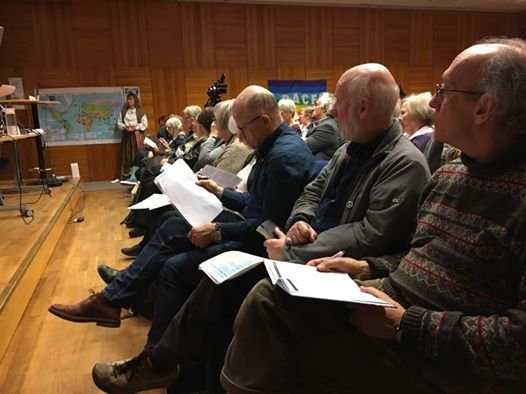 Claudio took us to the Folkets Hus, the local meeting place and specialist cinema run by the community. Here we met some of the people who would be helping set up the evening meeting. We then went to our accommodation - the Masthuggsterassens Vandrarhem Hostel - a very quiet, comfortable and well kept within easy walking distance of the city centre. Highly recommended! That evening we joined with some of our evening hosts for dinner. Wednesday February 8th - Meeting in Gothenburg The flyer advertising our evening event carried a photo of Donald Trump - we've seen his picture practically everywhere you turn since we arrived in Sweden and Finland days ago. Needless to say people are still trying to figure out what Trump will do in the coming years.
