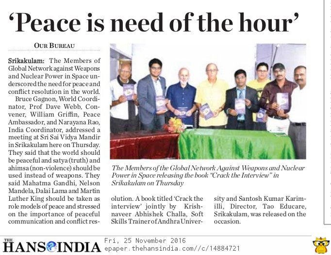 Sunday, November 20 2016Global Network Business Meeting Present: Dave, Bruce, Will, Atsushi, Rao, Sung-Hee There were only two items on the agenda really: 1. Thanks to Rao for the tremendous job he has done on organising the conference, speaking tour and generally getting more people and organisations involved in the GN from India and Nepal. 2. We agreed to propose that the 2017 GN annual space organizing conference (our 25th) be held on April 7-9 in Huntsville, Alabama. We’ have not held a GN event in the US for several years and Huntsville is the home of the Redstone Arsenal and the Space Command’s directorate for ‘missile defense’. Huntsville is called the ‘Pentagon of the south’ and is the manufacturing site for the PAC-3, SM-3 MD systems. In addition, THAAD is built in another part of Alabama. Redstone Arsenal was the place where the German rocket scientists were taken to after WW II to help create the US space program. The GN has held a meeting in Huntsville before - in 2001. It was agreed that we would seek approval from GN board members to go forward with planning for this event. We’d like to offer co-sponsorships to various other peace groups and Bruce Gagnon, Will Griffin and Dave Webb will form the initial organizing committee.