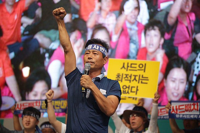 leader of the progressive KCTU labor federation) they put on the screen behind