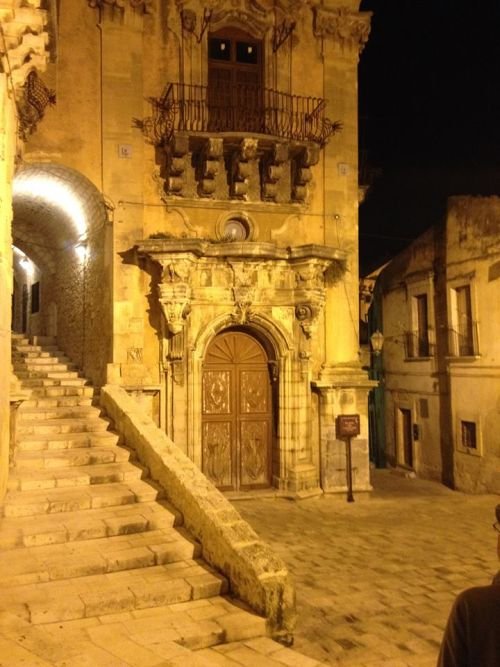 Update on Satellite Dish Climber: Last we heard Sicilian activist Turi was still on top of the US military war fighting satellite dish surrounded by police standing at the bottom pleading with him to come down. Turi is well known for having previously entered the base numerous times by cutting holes in the fence. I’ve seen videos of him trying to plant seeds inside the base which was illegally built upon a oak nature preserve. We spent today touring two ancient towns in southern Sicily - Modica and Scicli.
