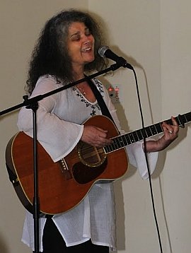Following the dinner we walked across the street to the Old Center Hall where we had a magnificent concert to cap off the evening. Boston-area Veterans for Peace leader Pat Scanlon and friends performed some of his rousing anti-war songs. Then we heard from a young man named Andrew McGarrah who sang a brilliant Sadako song in a tribute to the young girl who died trying to fold 1,000 paper cranes following the U.S. bombing of Hiroshima and Nagasaki. Our special guest, Japanese folksinger Tetsu Kitagawa, blew our hearts wide open with his wonderful songs – one of which is a tribute to the anti-militarist Article 9 of the Japanese Constitution that the U.S. is pressuring the Japanese government to dump so they can be dragged into the increasingly aggressive global NATO war making alliance. The wonderful thing about Kitagawa was that he spent the entire day with us at the conference. He spoke little English but sat through all the plenary sessions and workshops with his translator. Rarely do you see such a “star” do that. We must thank the AFSC’s Joseph Gerson for arranging to bring Kitagawa to the event.