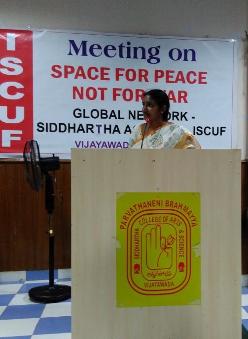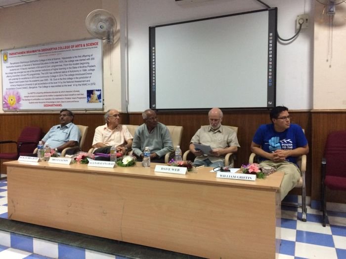 Early the next morning we took a train ride south for about six-hours or so to our next port of call - Vijayawada. Here we were hosted by the Indian Society for Cultural Co-operation and Friendship (ISCUF) who organised a meeting on "Space for Peace Not for War" in conjunction with Parvathaneni Brahmayya Siddhartha College of Art & Science, where we were introduced to Prof Rajesh Jampala, Dean of the college.