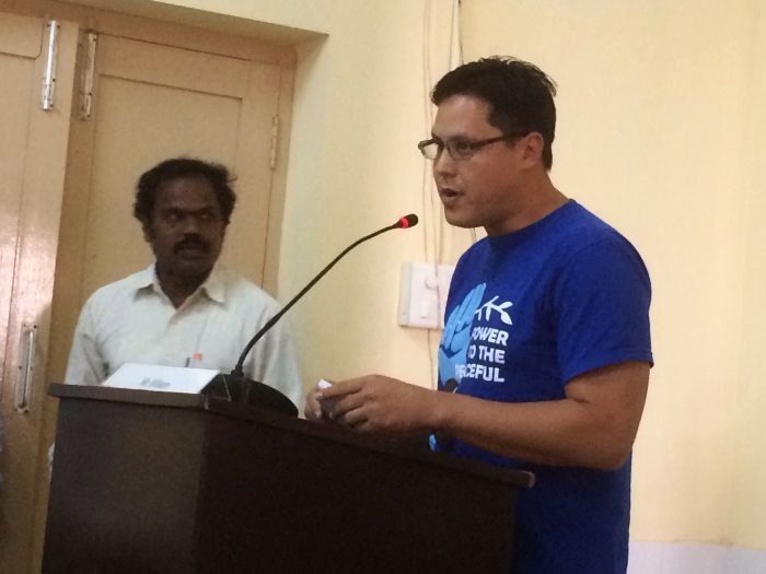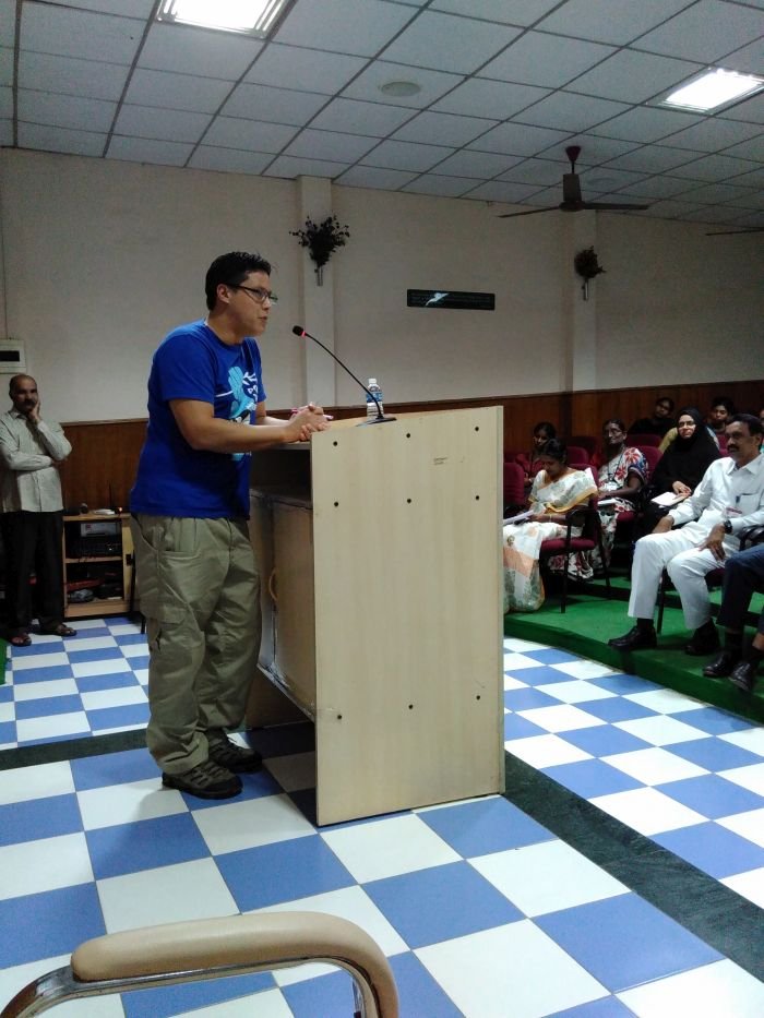 The honourable guest speaker commented on how when he was a kid people did not have to purchase bottled water. Soon he said only the rich will be able to afford to purchase fresh air masks due to the growing pollution that comes with India's massive growth index. After the forum we were invited to speak to other groups at Anrha University.