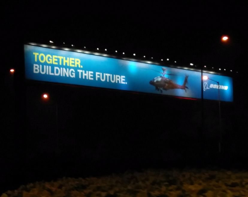 Early on Sunday morning we left Nagpur to fly to Delhi national airport and from there took an airport bus to the international terminal. On the way we saw a large billboard with a military helicopter and the Boeing logo alongside the words "Together. Building the Future".