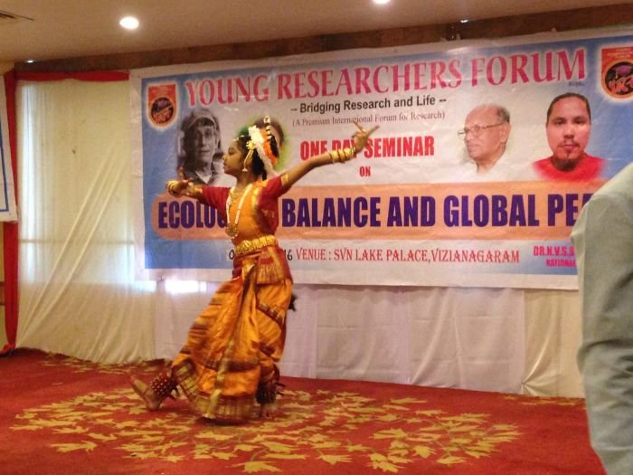 Wednesday, November 23 2016On the Wednesday morning we drove to Vizianagaram to a special seminar - 'Ecological Balance and Global Peace' - organised for science research students at a local venue (the Svn Lake Palace) by Dr. N.V.S. Suryanarayana, Head of the Department of Education, Andrha University. The seminar opened with a grand ceremony that included some incredible traditional dancing:
