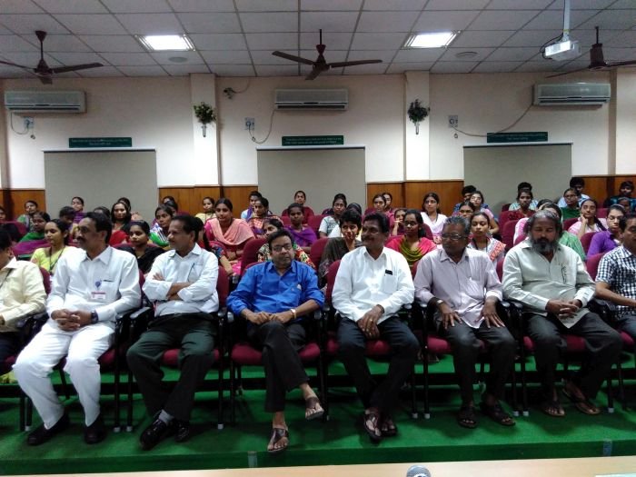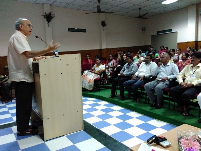 Monday, November 21 2016Reaching More Students in Visakhapatnam After the conference at GITAM, four of us stayed on in Visakhapatnam for more talks and visits. Our extra 2 day programme in Visakhapatnam was organised by our griend and colleague J.V. Prabhakar, a retired engineering school administrator who heads the Visakhapatnam chapter of the Global Network. Prabhakar works closely with J. Narayana Rao and has been to several of our past GN conferences in different countries. Prabhakar is widely respected in his community and he often introduced as at the various venues he had a connection with. On the 21st we visited the Dr. V.S. Krishna Government Degree College established in 1968. Here we met with the staff, including and over 100 students heard our talks. Following this we visited a private school which offered more educational opportunities for the children of parents with a higher income. Again more than 100 students listened to each of us speak.